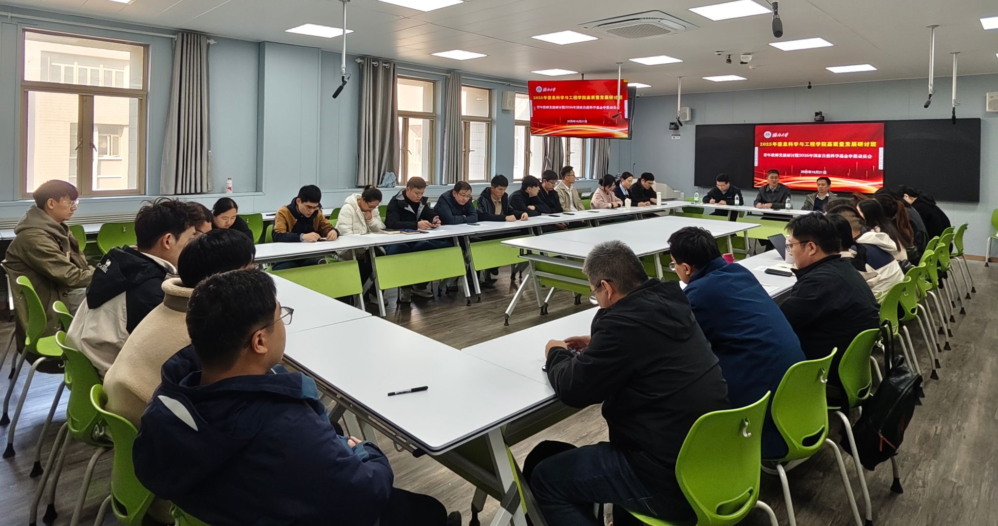 为深入贯彻落实学校高质量发展战略,进一步加强青年教师队伍建设发展,推动2026年国家自然科学基金申报工作,10月21日,信息科学与工程学院召开青年教师发展研讨暨2026年国家自然科学基金申报动员会。学院党委书记夏卫东、院长王琳、部分青年骨干教师等40余人参加会议,会议由副院长杨晓晖主持。
