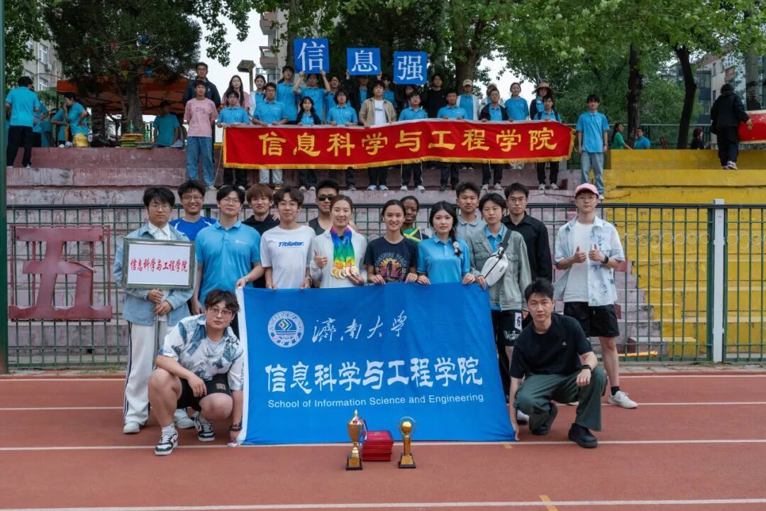 “迟日江山丽,春日花草香”,满园春色和少年的蓬勃朝气互相映衬,绿茵似锦与健儿的飒爽英姿相得益彰。4月30日,我校2025年田径运动会于济南大学田径场圆满落幕,信息科学与工程学院积极参与本次田径运动会,在赛场上奋勇争先,最终获得学生甲组团体第三名,教工组大基层工会团体第四名的好成绩。